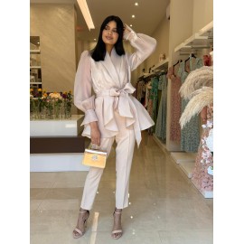 Nuovo Aggiungi al carrello Anteprima cordset Blusa e pantalone Completo pantalone palazzo, camicia in raso con pizzo.